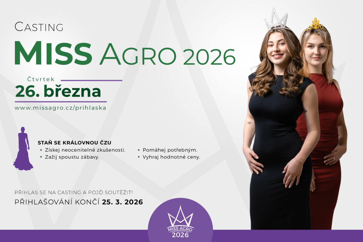 Vyvrcholení soutěže a jedinečný festival proběhne v který 12. května v areálu ČZU. Už teď ale máš šanci zúčastnit se velkého vyvrcholení jako jedna z finalistek. Casting Miss Agro proběhne v Kruhové hale v termínu 26. března od 17 hodin. Přihlášku je možné odeslat nejpozději s koncem dne 25. března. O postupu do TOP 10 rozhodne odborná porota. Deset finalistek a dvě náhradnice pak zažijí nejlepší 2 měsíce jejich života. Protože Miss Agro je především o přátelském kolektivu, nových zážitcích a zkušenostech, a především o velké legraci. Není to tradiční soutěž krásy. Tak už nehledej důvod, proč se nepřihlásit, ale odhoď pochybnosti a staň se 26. královnou ČZU!